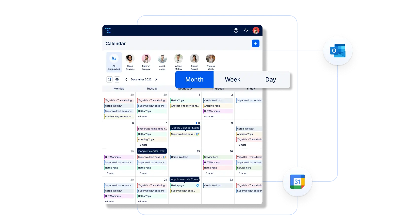 Além disso, os seus colaboradores podem sincronizar os seus calendários do Google ou Outlook com o software de gestão Glamio, reunindo todas as marcações num único local. Isto permite uma visualização clara dos horários e evita possíveis conflitos, marcações duplicadas ou mal-entendidos.